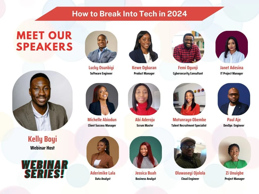 Thrilled to unveil our stellar lineup of Speakers for our upcoming monthly webinar series “How to Break into Tech” starting this February!
